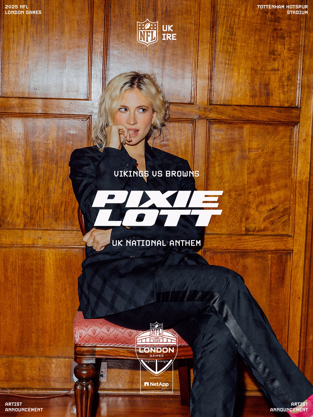 The National Football League has announced that three-time GRAMMY®- nominated, record-breaking BRIT Award winner RAYE will headline the halftime show during the first 2025 NFL London games matchup presented by NetApp between the Minnesota Vikings and the Cleveland Browns on Oct. 5 at Tottenham Hotspur Stadium.