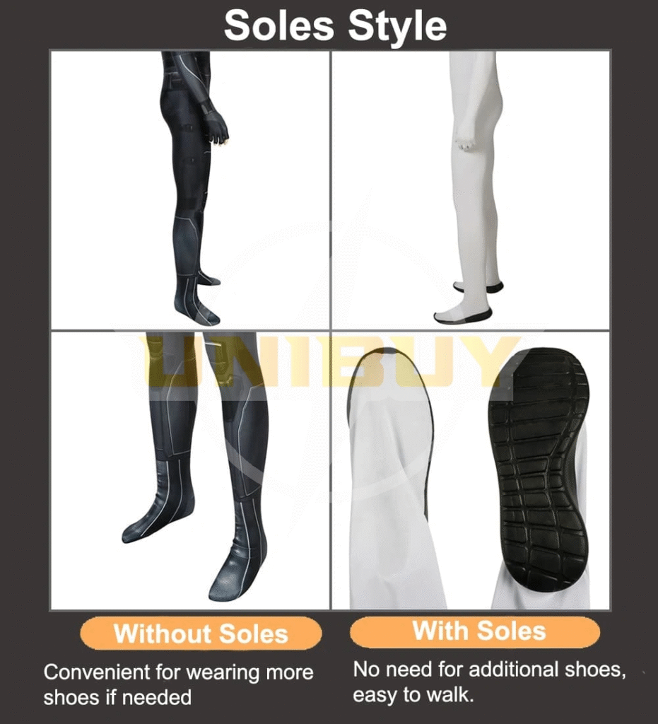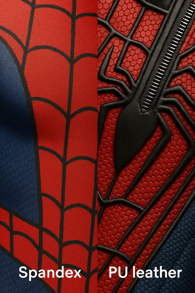 - Silicone-Printed Suit (150 USD+): Elastic base with silicone overlay that creates raised webbing and textured logos. Popular for Spider-Man, Homelander, and Superman. Durable, photo-ready, but slightly warmer to wear.